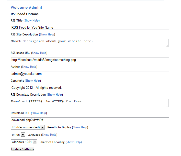 RSS Feed - c0rrupt - 07-03-2012 01:11 PM RSS Feed by Mr Happy Info Quote:Add a valid RSS Feed to your site and all your site categories. It's fully customisable through the APC so their are no file edits. Screenshots Admin Settings Easy to Install Admin Show Help for Settings Download [hide] Code: https://rapidshare.com/files/1619102743/wcddl_rss.php**NOTE** You will need the WCDDL Plugin Manager to install this mod. You can download it HERE |
