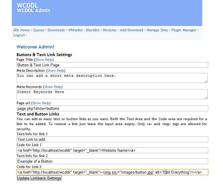 Text and Button Linkback Page